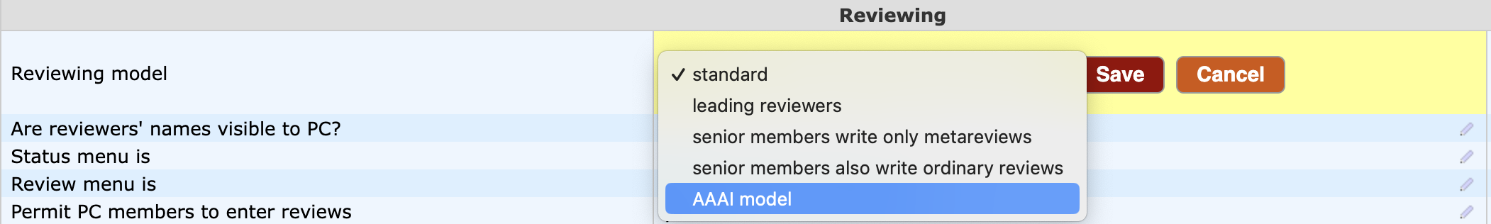 3. Select "AAAI model" as the value of the option "Reviewing model"